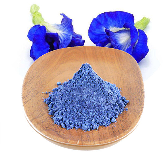 Kelebek bezelye tozu, kelebek bezelye çayı tozu, mavi bezelye çayı tozu veya mavi matcha tozu olarak da adlandırılan kelebek bezelye çiçeği tozu, içecekler ve yiyecekler için en iyi doğal mavi pigmentlerden biridir.Clitoria ternatea'nın kurutulmuş çiçeklerinden yapılır.Kelebek bezelye çiçeği tozu suda çözünür ve kalori, yağ ve şeker içermez.Mavi renk, ana bileşen olan antosiyaninden gelir.PH değeri, solüsyondaki kelebek bezelye çiçeği tozunun rengini değiştirebilir.Çözelti asidik olduğunda renk mora, hatta kırmızıya döner;çözelti alkali iken renk yeşil olacaktır.